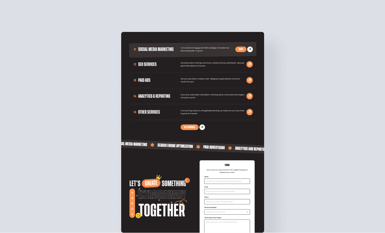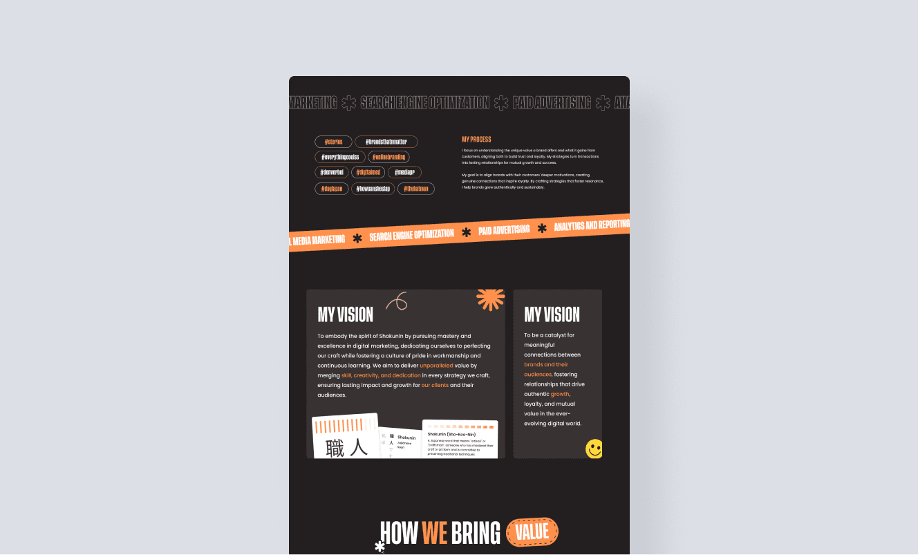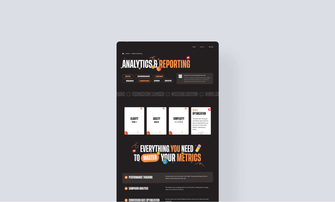 The client faced a challenge with digital engagement, users often left the site quickly and struggled to understand the agency’s unique approach and broad service offerings. The client’s previous website felt static and uninspiring, with a plain layout and muted colors that failed to reflect the vibrant nature of the digital marketing industry. This made it difficult for Digital Dojo to stand out or connect with modern audiences looking for creativity and energy in digital brands.